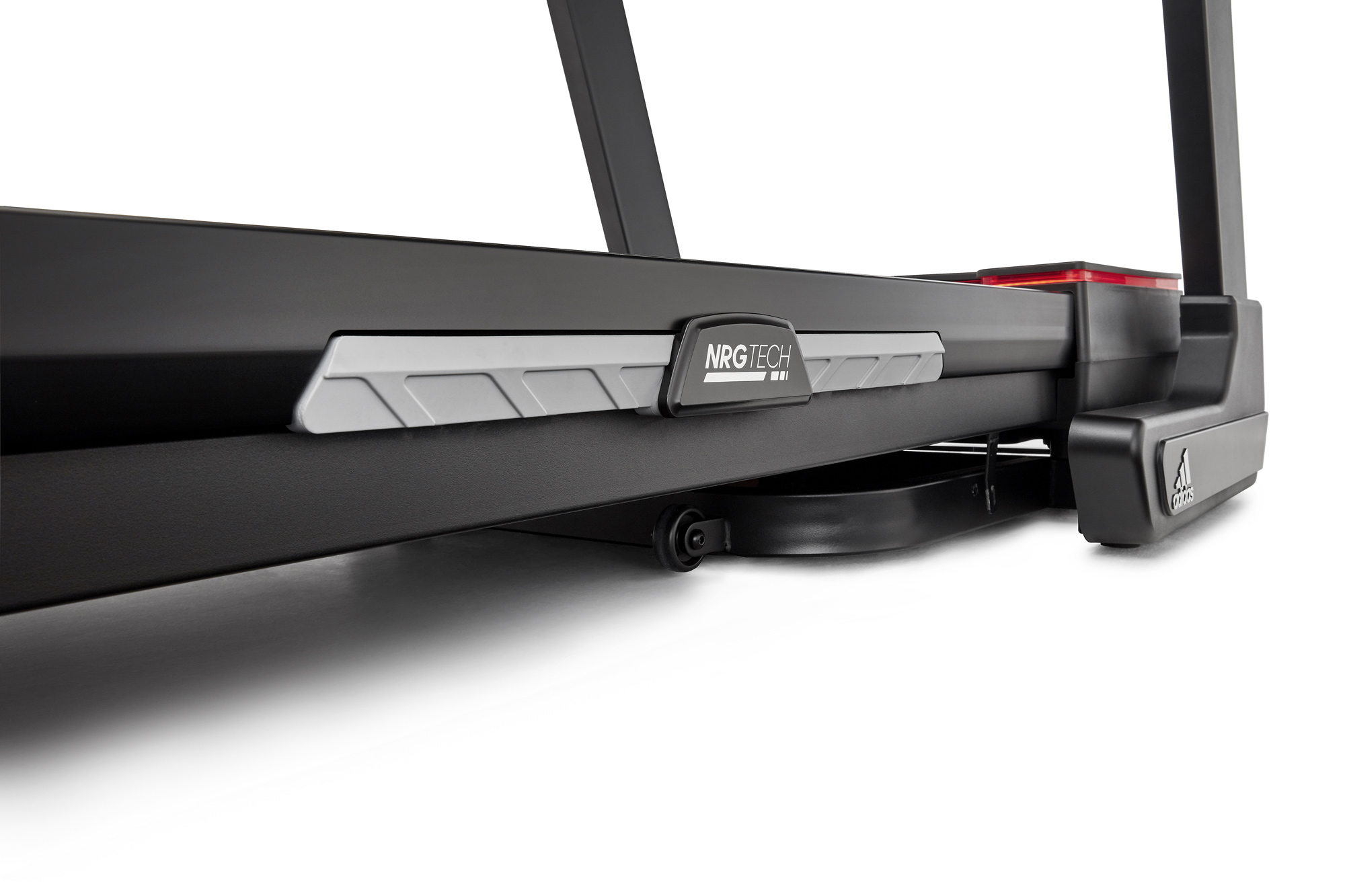Просторное беговое полотно 140 x 51 см вместе с амортизированной декой предоставит вам всю свободу и комфорт, необходимые для преодоления многих миль, и улучшит вашу общую физическую форму, силу и выносливость. Амортизирующая технология NRG была разработана специально для поглощения удара вашей стопы и помогает снизить нагрузку на суставы.