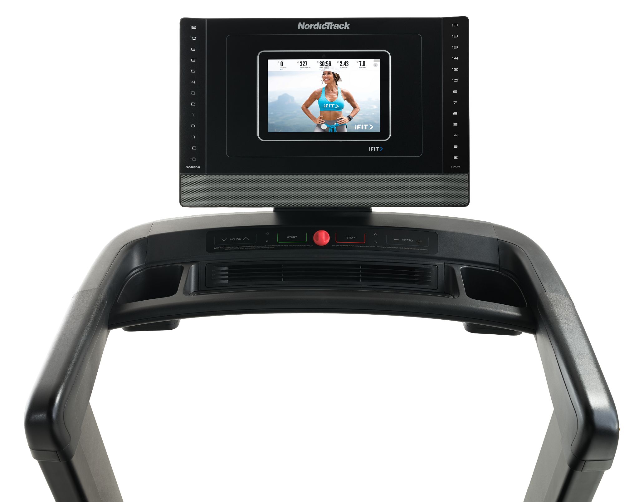 Производитель NordicTrack Вид применения домашний Тип дорожки электрическая Угол наклона -3-12° Система амортизации RunnersFlex Cushioning Длина бегового полотна, см 152 Ширина бегового полотна, см 51 Мощность двигателя, л.с 3 Дисплей 10" LCD сенсорный, цветной Встроенные датчики пульса нет (опция беспроводной) Время тренировки + Скорость + Пройденная дистанция + Калории + Переноска и хранение компенсаторы неровности пола, транспортировочные ролики, складной Максимальная скорость, км/ч 19 Максимальный вес пользователя, кг 135 Возможность подключения MP3 устройства есть Питание от сети 220В Поддержка iFit да (встроенный модуль) Встроенный вентилятор + Держатель для бутылки + Складная конструкция + Дополнительно встроенные динамики Беспроводные технологии Bluetooth Габариты (ДхШхВ), см 199х90х164 Вес в упаковке, кг 130 Габариты упаковки (Д×Ш×В), см 214х84х38