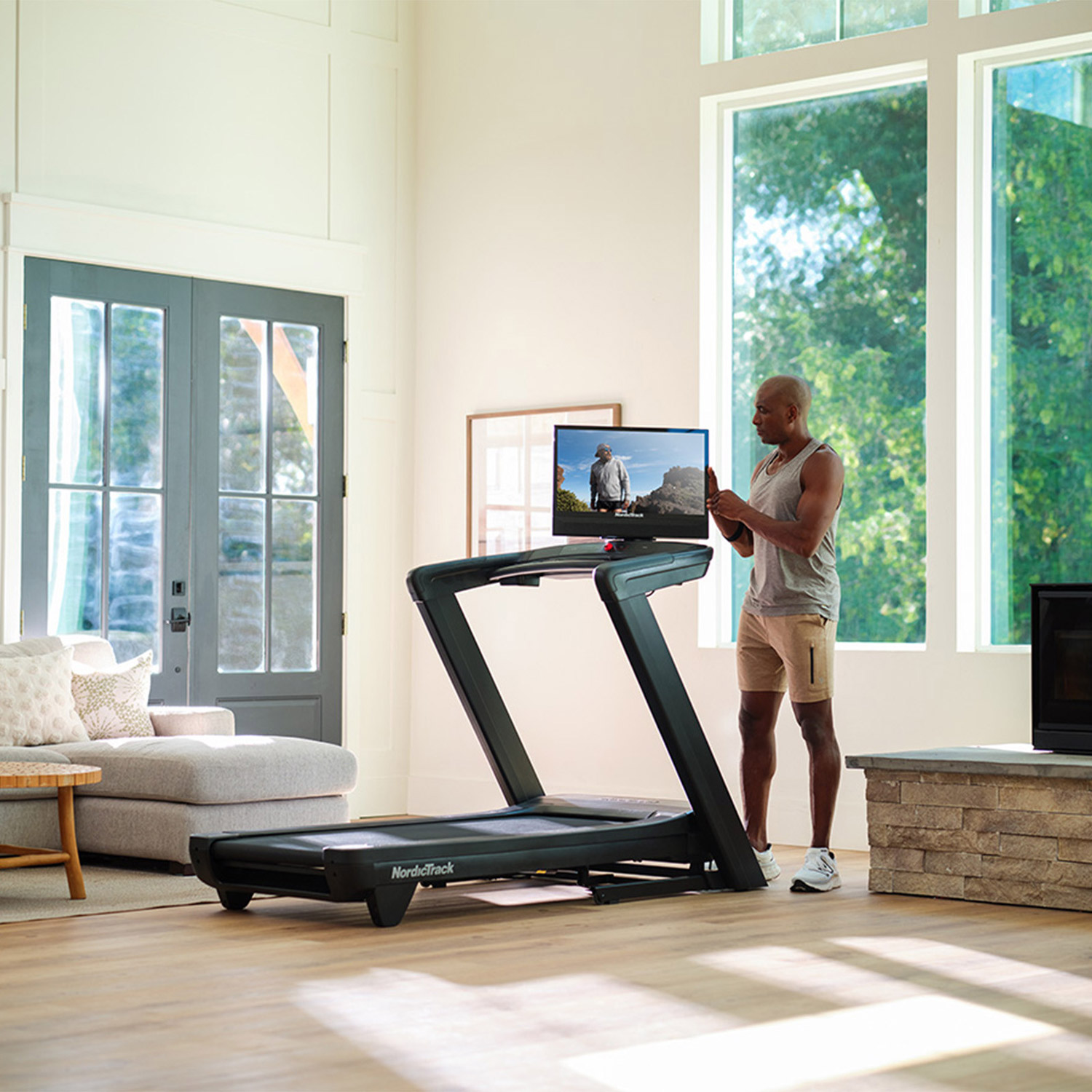 Новый 24" сенсорный HD-экран большой, четкий и может поворачиваться, что позволяет легко идти в ногу с тренировками, даже если вы сходите с беговой дорожки для силовых упражнений или растяжки. Благодаря более просторному беговому полотну шириной 55 см NordicTrack дает вам больше места для естественного бега. А для практичности есть порт зарядки USB-C, чтобы ваш телефон или планшет заряжались во время сеанса.