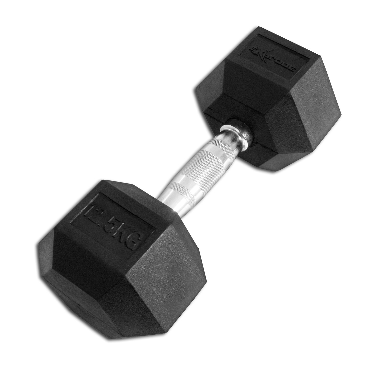 Гантель гексагональная обрезиненная Explode 12,5 кг PD-108-12,5 - оптимальный выбор для силовых упражнений и функциональных тренировок. Грузы имеют шестиугольную форму и покрытие из высокопрочной синтетической резины, которые обеспечивают стабильность гантели как на ровной, так и на наклонной поверхности пола. Кроме того, качественное резиновое покрытие защищает поверхности при столкновении. Шестиугольная форма весов придает гантели устойчивость, что позволяет использовать их в качестве упоров для отжиманий и планки. Гриф анатомической формы имеет хромированное покрытие с фрезерованным профилем, обеспечивая надежный захват.