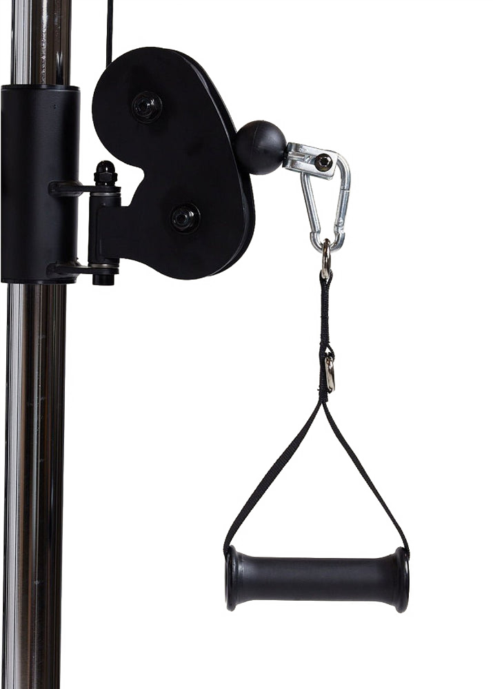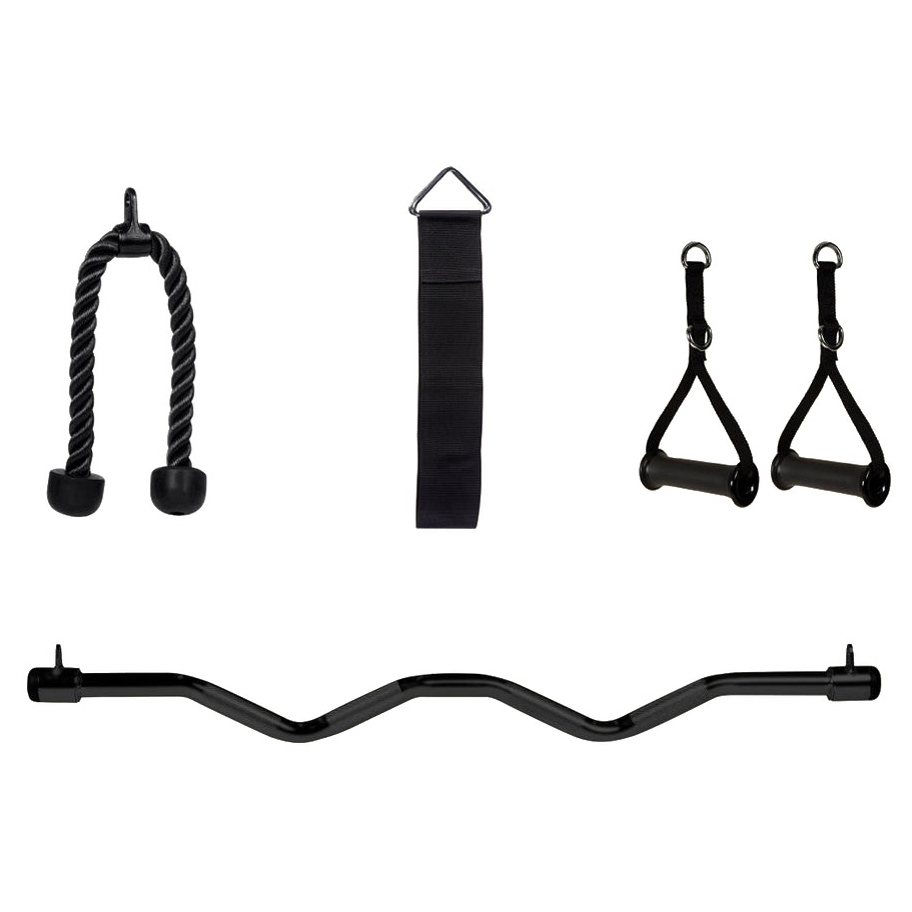 Спортивное оборудование дополнительно комплектуется двумя рукоятками, зигзагообразным и прямым грифом, канатом для трицепса (наполнение может меняться изготовителем). Дополнительное оборудование позволяет выполнять разные упражнения для работы с мышцами всего тела. В процессе тренировки в работу включаются широчайшие мышцы спины, трицепс, бицепс, дельтовидные и грудные мышечные группы, мышцы предплечья, ягодичные, мышцы ног и другие.