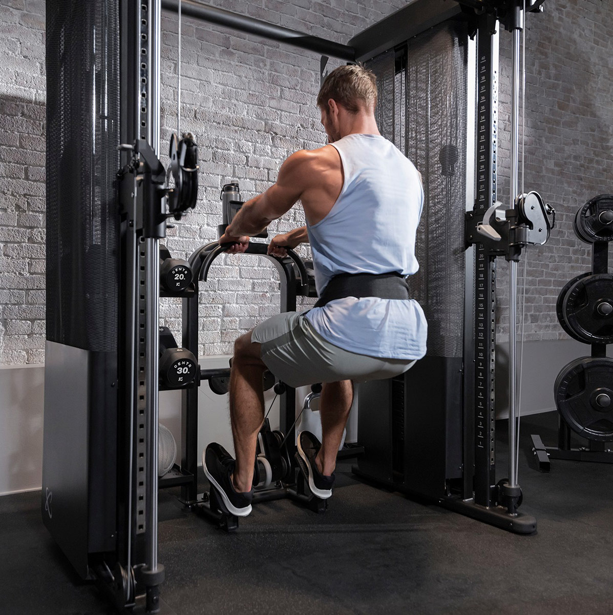 Универсальная тросовая тяга обеспечивает множество вариантов хвата для различных вариаций упражнений, помогая проработать несколько групп мышц. Многопозиционным турник с регулируемыми скалолазными ручками добавляет дополнительную нагрузку, позволяя вам развивать силу хвата и проработать мышцы верхней части тела. Все встроено, поэтому нет необходимости в дополнительных приспособлениях.