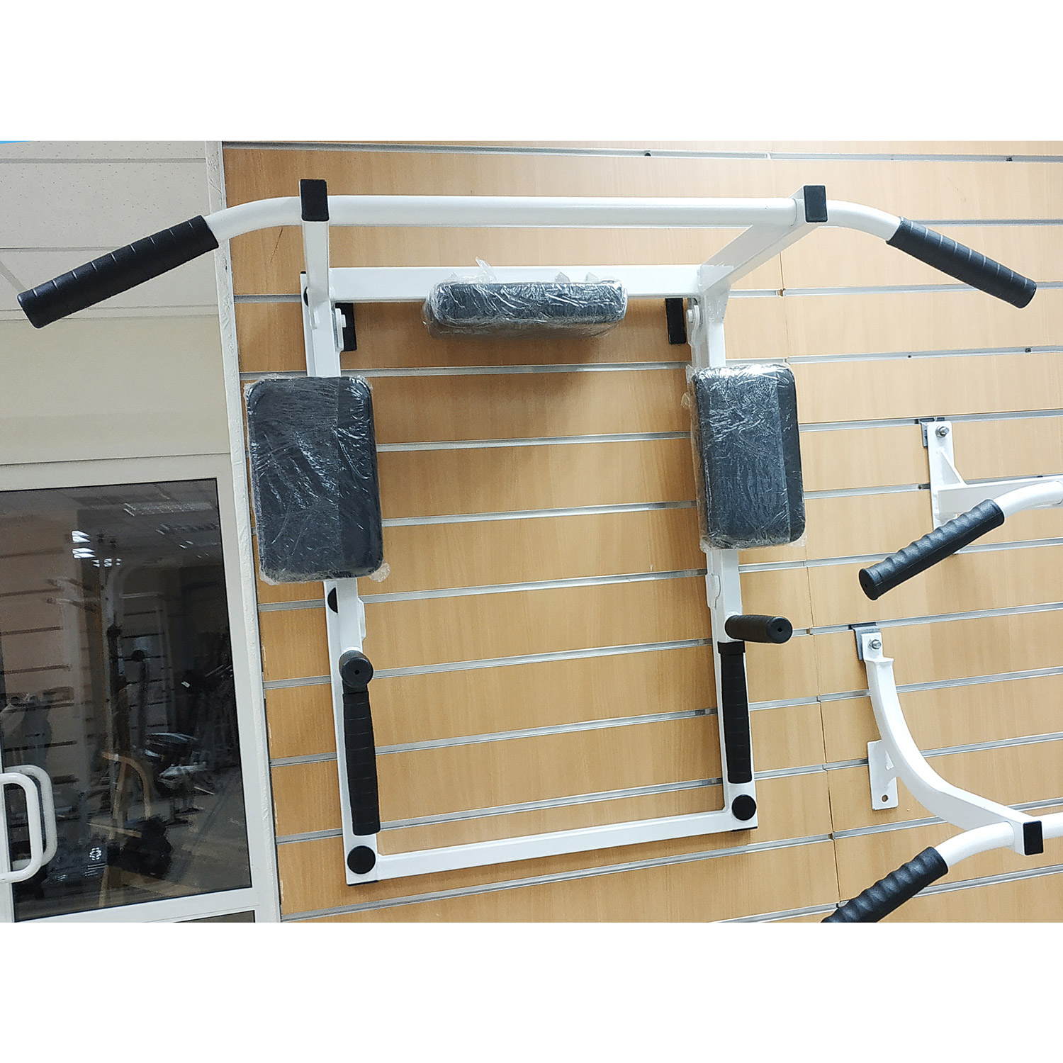 Настенный турник-брусья поможет всегда держать себя в форме. За счет работы с собственным весом, вы даете нагрузку на различные группы мышц. В зависимости от упражнений, комплекс может устанавливаться в положение турника или брусьев.
