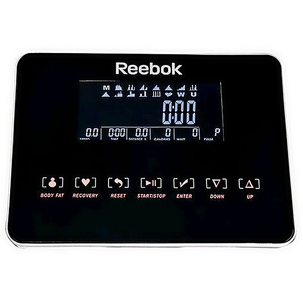 Производитель Reebok Вид применения домашний Дисплей 5,5" ЖК экран Встроенные датчики пульса да (рукоятки) Время тренировки + Скорость + Пройденная дистанция + Калории + Переноска и хранение транспортировочные ролики Маховое колесо, кг 9 Тест физического состояния (сканирование) фитнес тест Педали нескользящие Рычаги для рук нерегулируемые Возрастная категория для взрослых Пульс на рукояти Длина шага, см 38 Уровни нагрузки, шт 30 Максимальный вес пользователя, кг 120 Система нагрузки электромагнитная Питание батареи Угол наклона рампы не регулируется Кардиодатчики есть Габариты (ДхШхВ), см 182х67х174