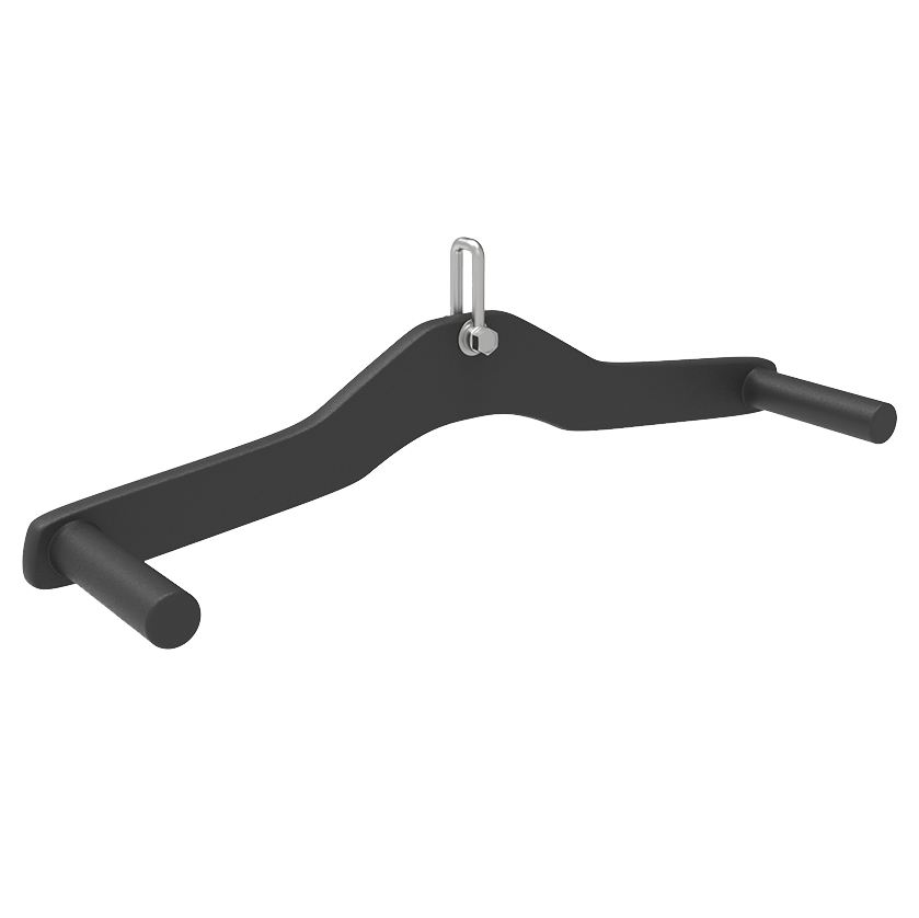 Корпус виготовлений із міцної вуглецевої сталі з ПВХ покриттям, стійким до зносу та корозії. Ергономічний дизайн і текстурована оболонка ПВХ забезпечують надійний і комфортний хват, запобігаючи ковзанню рук під час тренування. Ручка сумісна з блоковими тренажерами та відмінно підійде як для професійних, так і для домашніх спортивних залів.