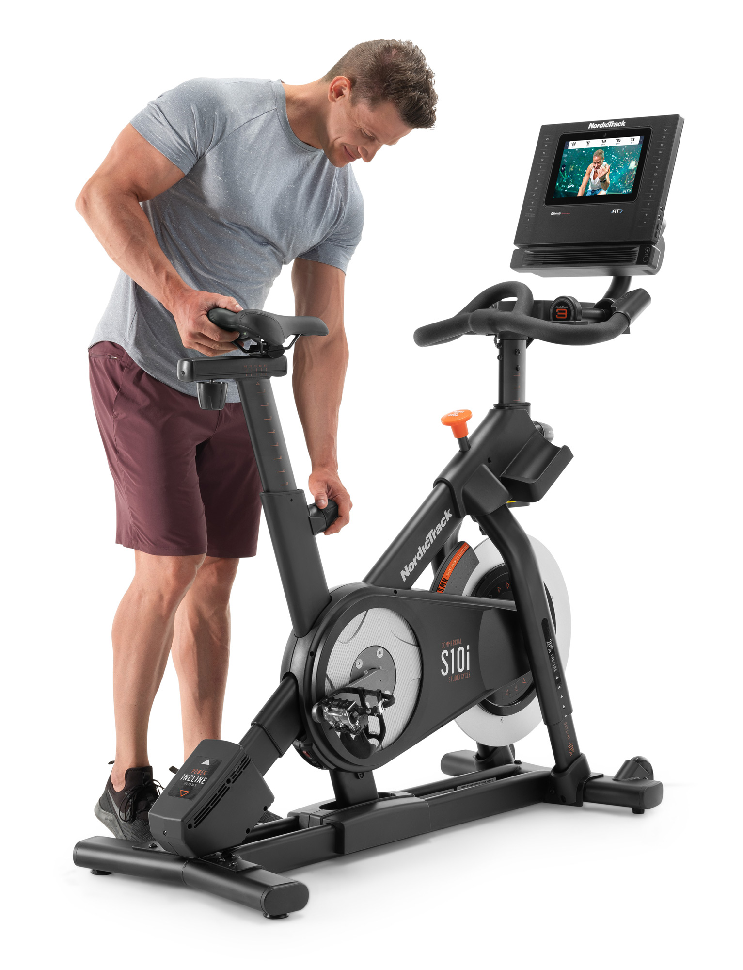 Спинбайк NordicTrack Commercial S10i NTEX03121, благодаря своей комфортной конструкции, является идеальным тренажером для интенсивных тренировок. Его регулируемое мягкое сиденье гарантирует максимальный комфорт для ваших занятий. Этот тренажер-велосипед имеет инновационный дизайн с 10-дюймовым сенсорным экраном для более увлекательных тренировок. Система Touch Control обеспечивает наилучшие и наиболее удобные настройки угла наклона, позволяя изменять его одним нажатием кнопки. В комплект входят также пара гантелей на специальной подставке, с помощью которых можно разнообразить тренировку новыми вариантами упражнений.