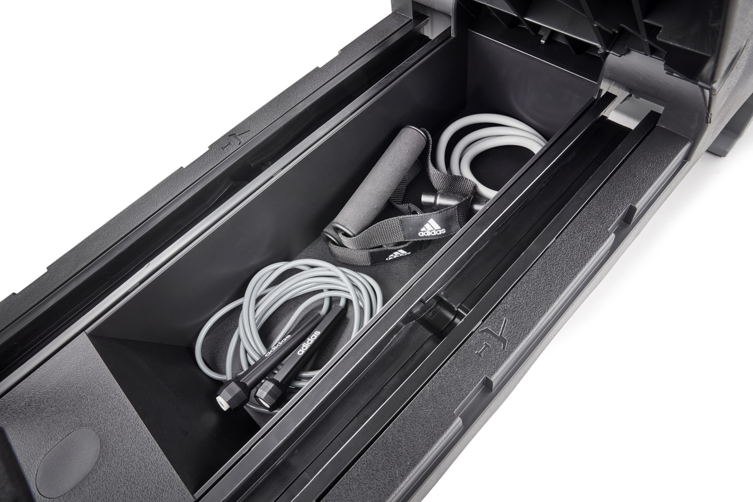Улучшите свои тренировки еще больше, включив любое количество тренировочных аксессуаров в платформу HIIT Deck. Чтобы помочь вам начать, во внутреннем отсеке для хранения есть эспандер и скакалка. Здесь вы также найдете QR-код Scan to Train, который дает вам доступ к эксклюзивному контенту для тренировок через интернет.