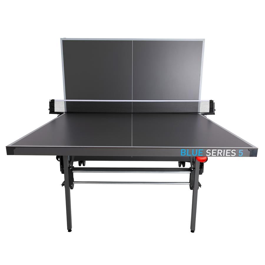 2 держателя для ракеток и мячей по бокам (ракетки и мячи в комплект не входят). 4 двойных поворотных колеса с резиновым протектором. Конструкция устойчива к вибрации. Автоматический механизм блокировки в игровом и складном положении. Ручка механизма в любом положении стола видна со всех сторон.
