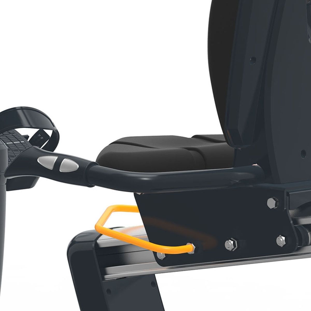 Эргономичные боковые рукоятки сиденья оснащены сенсорными датчиками пульса и кнопками быстрого управления сопротивлением, что позволяет легко регулировать нагрузку, не меняя положения тела. Велотренажер также поддерживает телеметрическое измерение пульса для более точного контроля сердечного ритма. Дополнительные отделения для хранения аксессуаров делают использование тренажера еще более практичным, создавая комфортную и продуманную среду для эффективных тренировок.