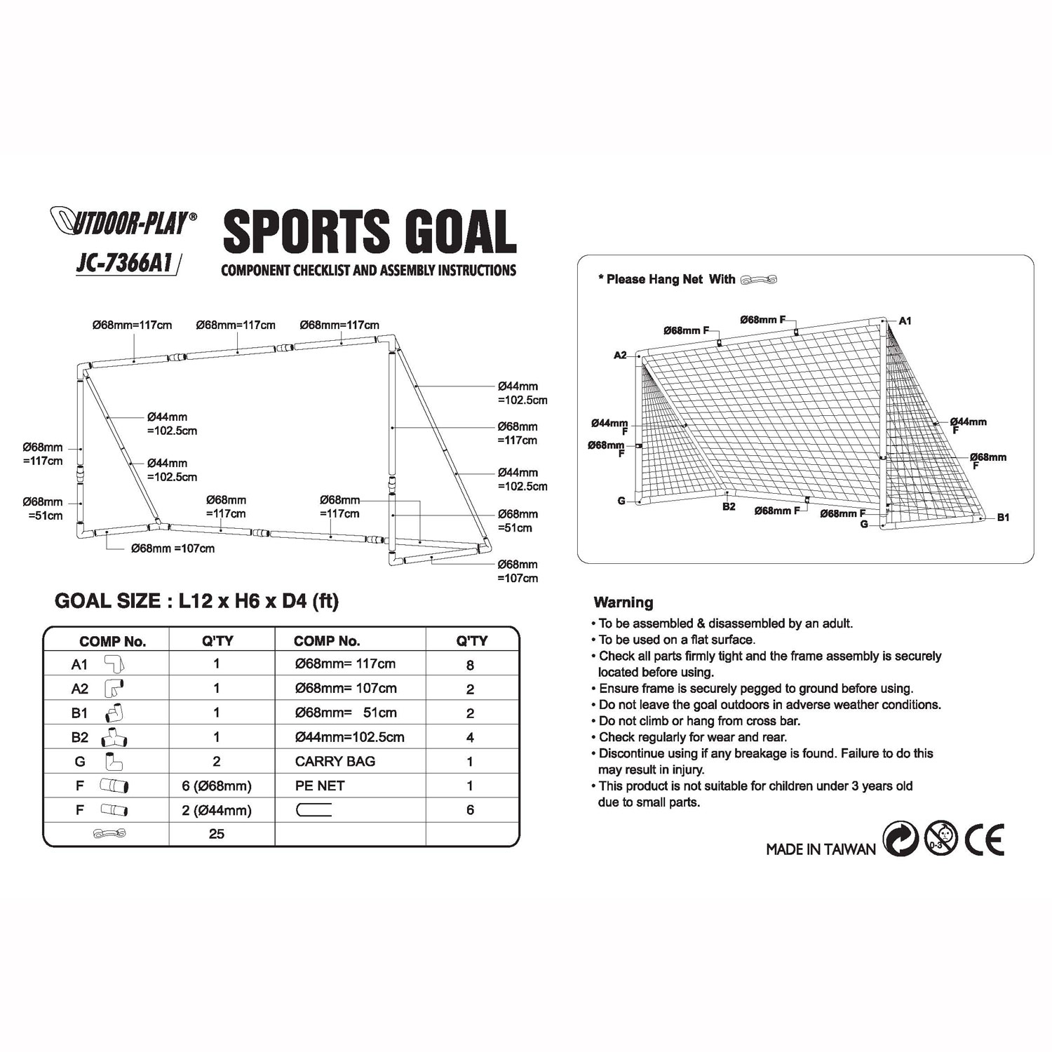 Описание / Ворота футбольные Outdoor-Play JC-7366A1