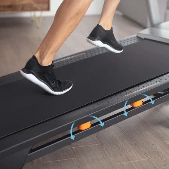 Система складання Space Saver дозволяє легким рухом руки перевести бігову доріжку в вертикальне положення для зручного зберігання. Спеціальний газовий амортизатор EasyLift розроблений так, щоб мінімізувати зусилля при складанні. Завдяки цій запатентованої технології навіть тендітна дівчина без зусиль і безпечно може скласти/розкласти та пересунути бігову доріжку.