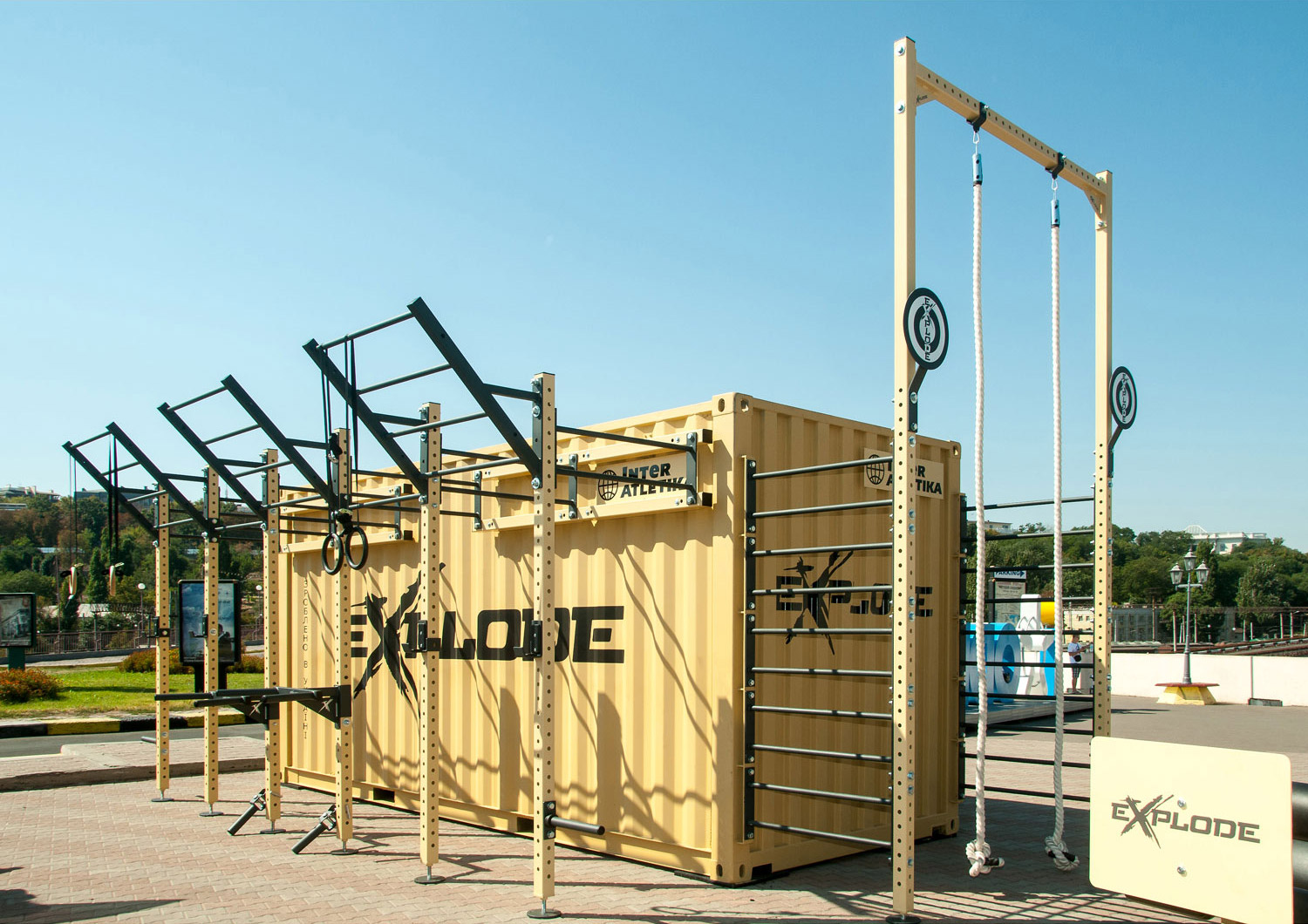 Мобільний спортивный комплекс Explode KFZ701 (20-футовий контейнер) від компанії "Інтер Атлетика" - це пересувний спортивний центр. Він комплектується спортивними снарядами різної спрямованості, за допомогою яких можна відпрацювати повноцінне, різноманітне функціональне тренування.