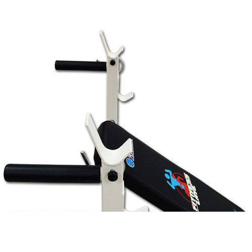 - На стійках знаходяться страхувальні гаки, які дозволять з максимальною безпекою виконувати жими великих ваг.