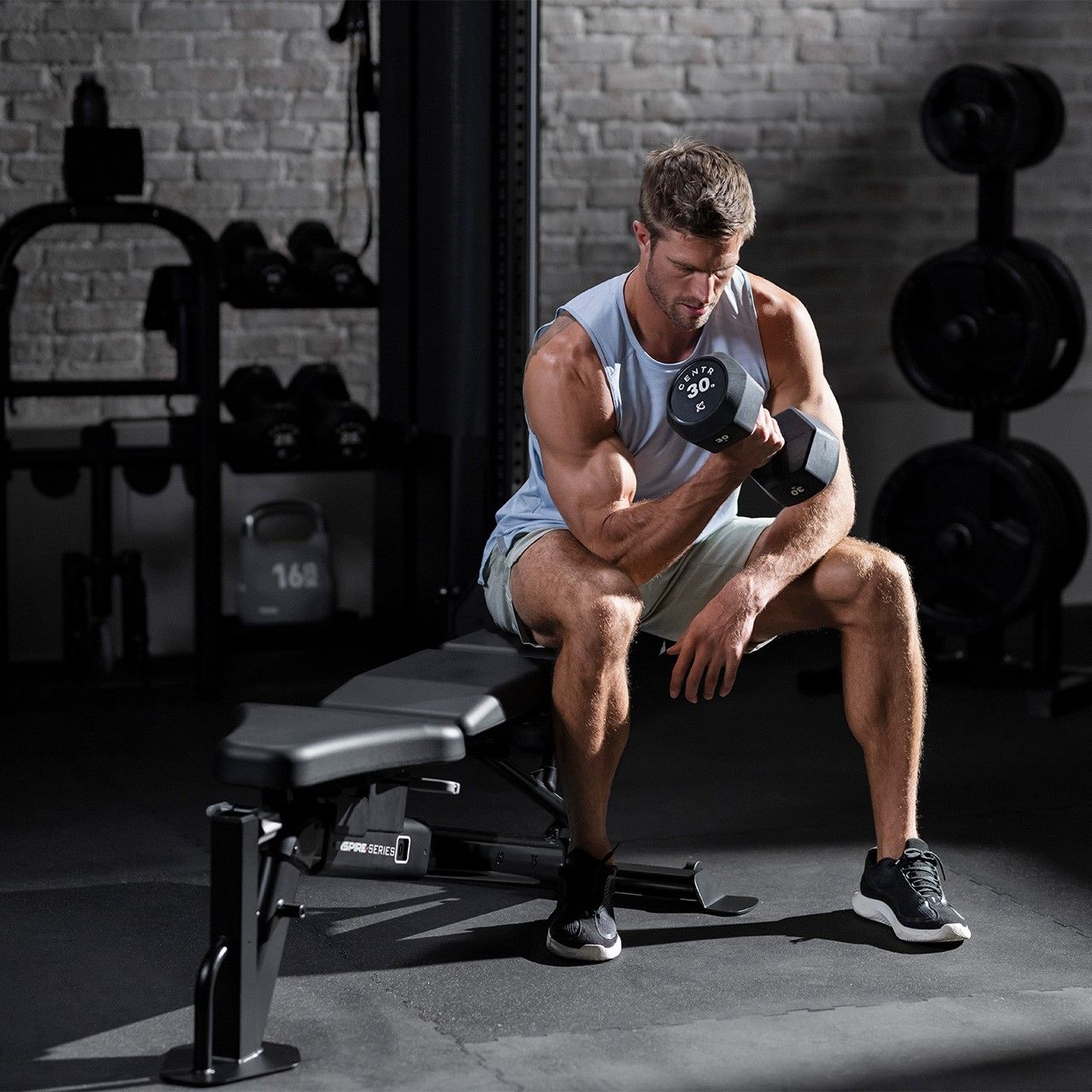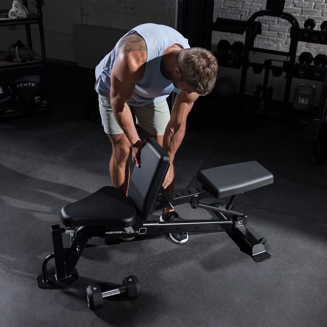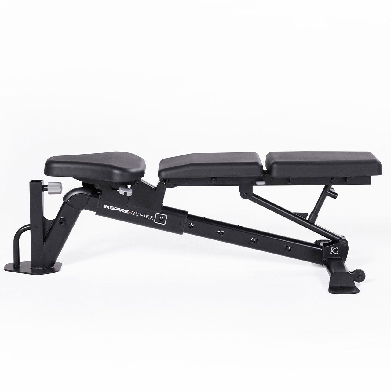 - Кут нахилу регулюється від горизонтального до прямого, що дозволяє по-різному навантажувати м'язи та виконувати широкий спектр вправ – від класичного жиму до вправ для розвитку черевних м'язів.