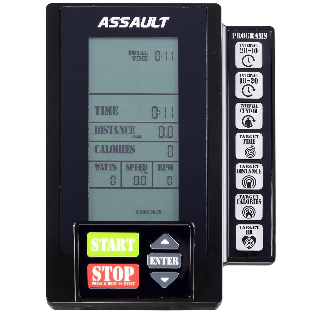 Велотренажер Ассаулт AirBike укомплектований комфортними ручками, зручним сидінням, універсальною ручною педаллю, комфортними тримачами, високоякісними сайлентблоками, педалями та сталевою молібденовою рамою. Повітряний маховик дозволяє швидше прокачати м'язи ніг, зміцнити поперек, черевний прес, на відміну від звичайного велотренажера. Assault AirBike спроєктований і перевірений атлетами та фітнес-тренерами, є унікальним тренажером для ефективних і результативних тренінгів і визнаний кращим серед вентиляторних велотренажерів для використання в кросфіт-клубах. Унікальність Assault AirBike в індивідуальних налаштуваннях, і не тільки сидіння і заліза, а й програм тренувань: контролюйте частоту серцевого ритму або переходите до високоінтенсивного інтервального тренування. Велотренажери Assault AirBike - це найпопулярніші велотренажери в кросфіті.