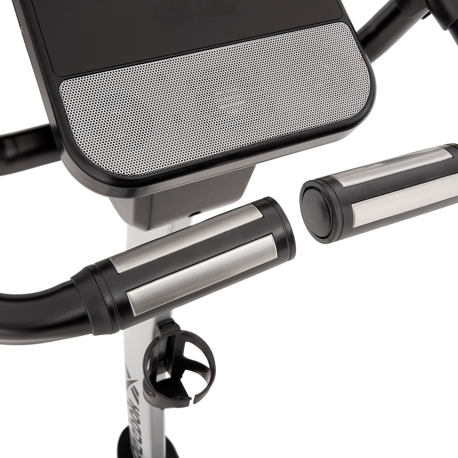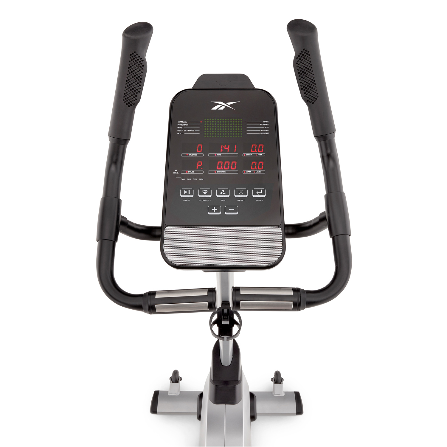 Велотренажер Reebok SL8.0 повністю обладнаний для розвитку як кардіо, так і м'язової витривалості, включаючи ваші квадріцепси, підколінні сухожилля та ікри, не торкаючись коліна чи кісточки. Завдяки міцному маховику вагою 7 кг, 24 рівням електронного опору та 12 мотиваційним фітнес-програмам, SL8.0 також забезпечує 4 визначені користувачем, 3 цільові та ватні функції управління для нескінченних варіантів тренувань.