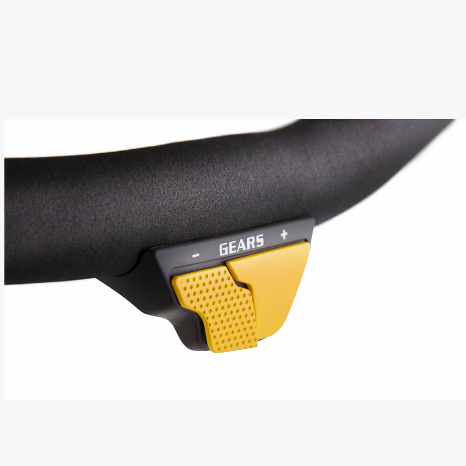 Ергономічне сидіння з регулюванням по горизонталі і вертикалі, можливе регулювання нахилу вниз або вгору, а також установка власного сидіння. Двосторонні педалі.