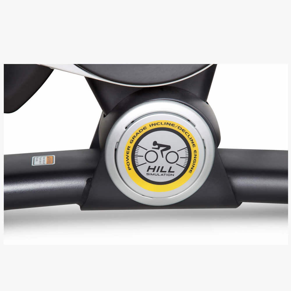 Позитивний нахил 0-20%, негативний нахил 0-20%. Мультіпозіціонний спортивний нековзний кермо з датчиками вимірами пульсу, регулювання навантаження на кермі.